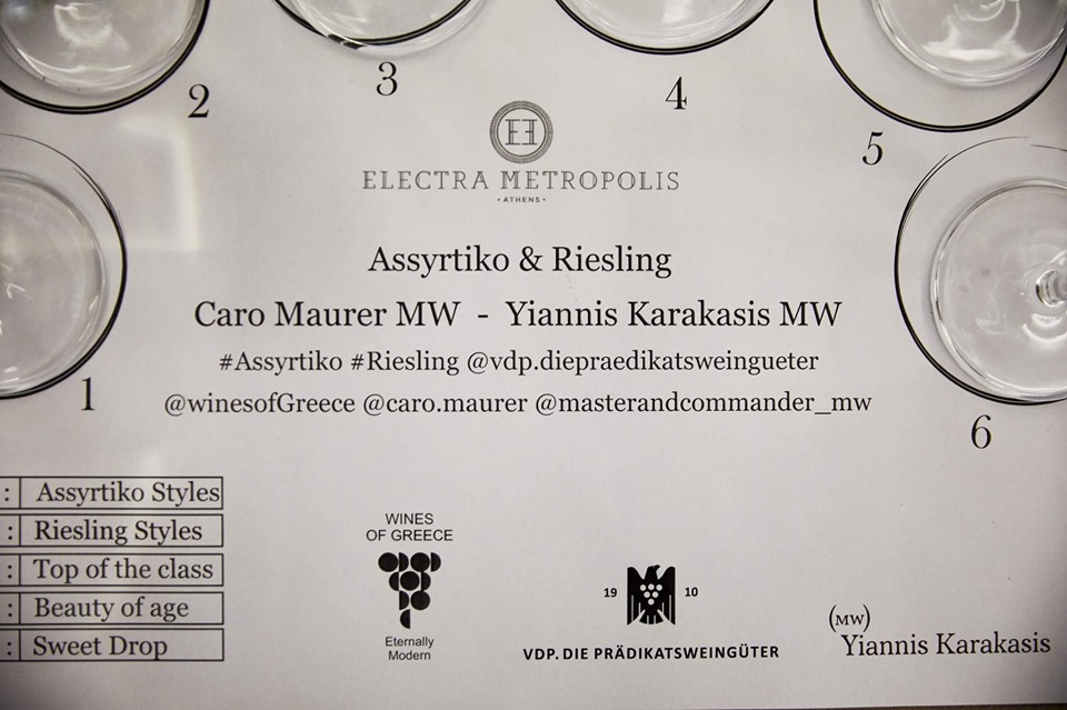Το Masterclass χωρίστηκε σε 5 flights (οινικές ενότητες) και δοκιμάστηκαν συνολικά 23 κρασιά κορυφαίου επιπέδου. 11 Riesling και 12 Ασύρτικα!!